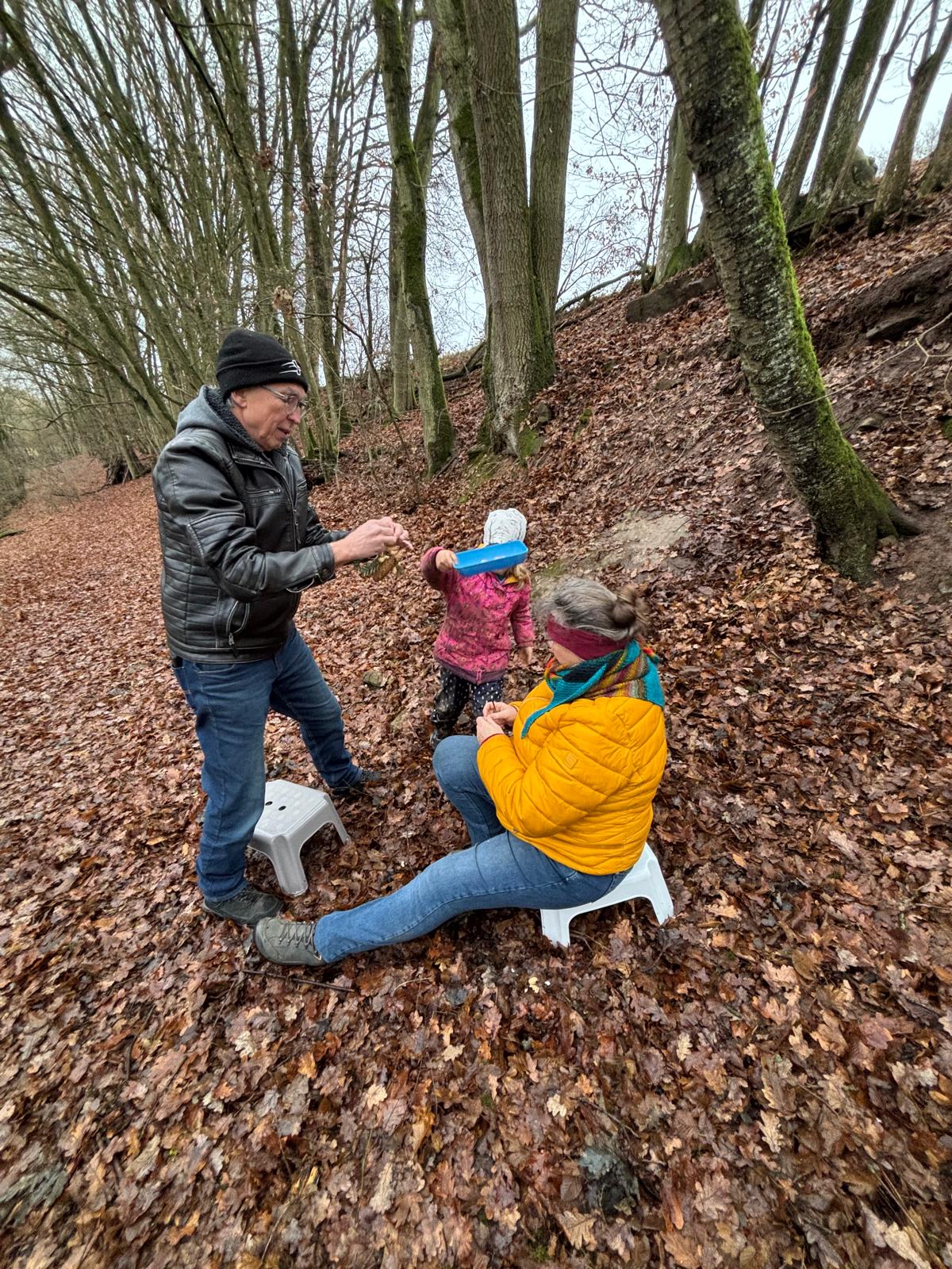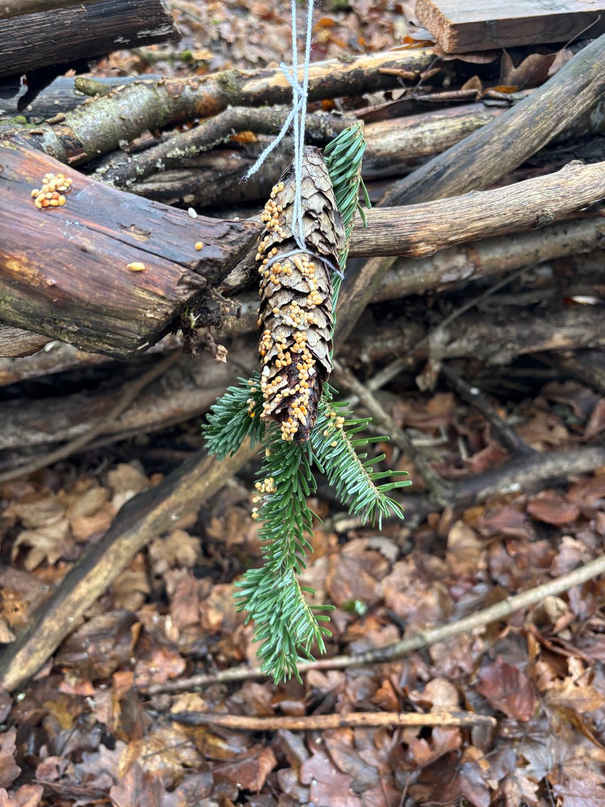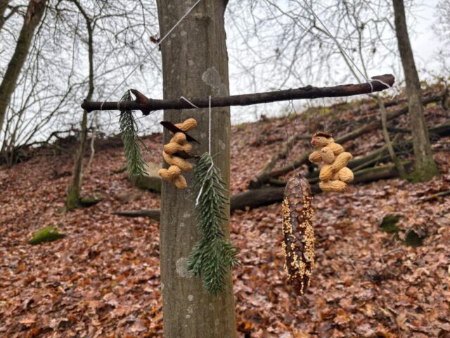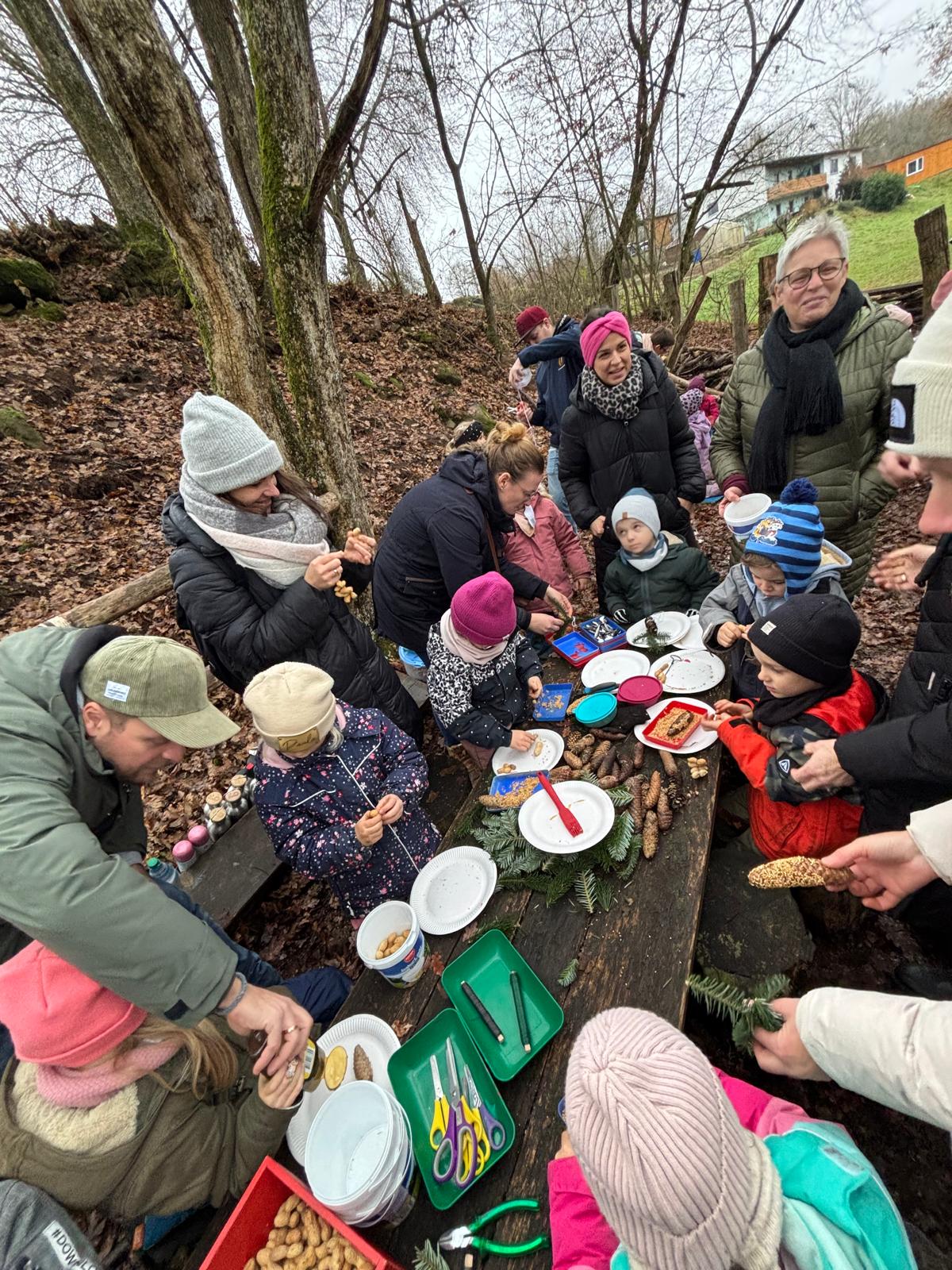 Anschließend bastelten die Kinder zusammen mit ihren Gästen Vogelfutteranhänger, um den Wald zu schmücken und den Tieren in der Winterzeit eine Freude zu machen.