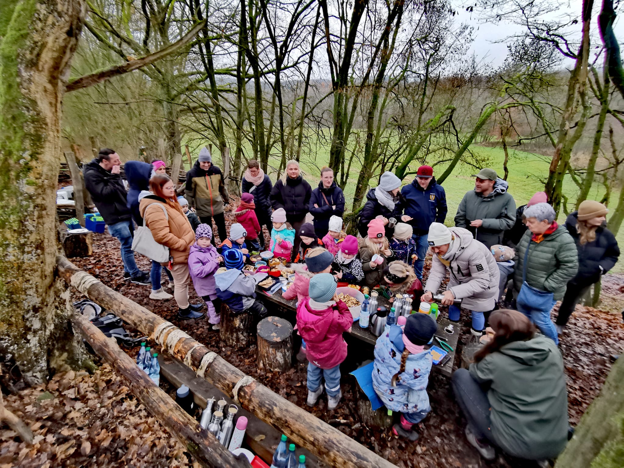 Am Freitag, den 12.12.2025, trafen sich die Vorschulkinder zu einem vorweihnachtlichen Beisammensein im Wald. Begleitet wurden sie von ihren Familien – Mamas, Papas, Omas und Opas waren herzlich eingeladen.